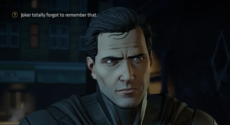 This immersion into escapism fails, though, when the character I’m directing and I fundamentally disagree, and the game provides no avenue to explore that. This is always the risk with interactive novels. Unlike a game where the main character is a completely blank slate, Bruce Wayne is an established character. He has a backstory, his own motivations, and an expectation of what he’ll do. The plot of this game also has its expectations, and much as discussed in the previous review of this series, there are beats it will always hit and fences around our playground of choice. I have no objection to the fences. It’s not possible for a game with a structured plot to leave room for all of the multitudes of choices I could make, and even within this space, Telltale does a fantastic job accommodating a vast range of possibility.