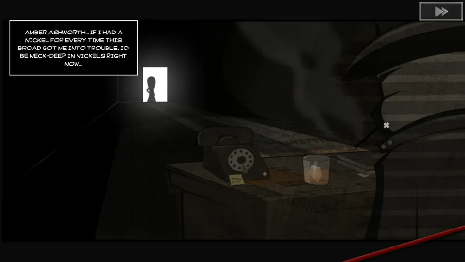 I will be absolutely transparent: I hated this game. I was neutral going into it - I dislike point-and-clicks generally, but enjoy mystery and noir, so tentative optimism? - and I couldn’t far into it before I recognised how much my absolute frustration with it was going to colour this review. This is a review that does not reflect a full playthrough, but one which I hope does reflect enough of a playthrough to give a sense of the game and why I feel the way I do. It may be there’s something glorious I’m missing, deeper in. I don’t happen to have enough faith in this game to carry me to whatever beautiful thing might be waiting deeper in this story.