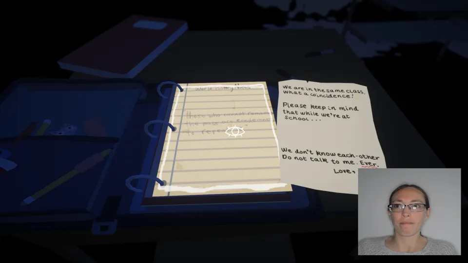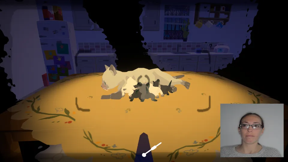 By cuing story progression to blinking, the game’s only challenge becomes a physical one. When I wanted to stay in a scene longer, or see how it played out, I had to keep my eyes open. As each scene represents a particular memory, this challenge played nicely with the challenge of memory itself. When recalling our lives, we inevitably lose track of some memories, or wish a moment could have lasted longer. How our brains conceive of our past and who we are is fragmented, cutting some things in favour of others, or lingering too long on those things that never mattered in the first place. I barely remember my wedding day, for example, but I remembered losing a North Carolina trivia contest to Jacob de Witt in 4th grade. This is the fickleness of memory.