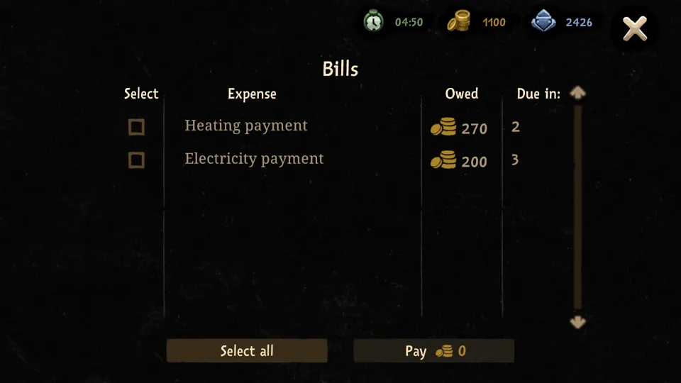As part of these quests, the game uses three currencies - time, money, and influence. Influence and money can often be spent interchangeably - though only money can be used for the ever-increasing number of bills, and only influence can be used for a promotion or to open new conversation options - but time is a unique currency. Each day has nine hours, and each task takes a certain amount of time. The game becomes a balancing act of trying to accomplish what needs to be done, while also being cognizant of the amount of time each of the necessary tasks takes. It’s an interesting mechanic, even if it’s not a unique one, and it adds a nice bit of pressure to the game.