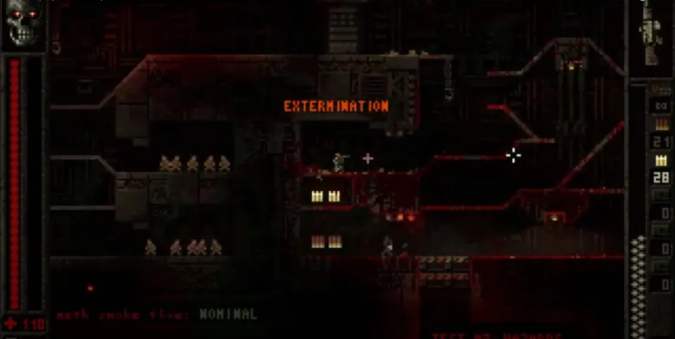 Butcher is a 2-D, arcade-style shooter reminiscent of nothing quite so much as long car rides curled up around a Gameboy, ignoring the world outside. It has the same twitchy mechanics, the same simple style of shooting, and evokes exactly the right nostalgia. It’s a game from the 90s, teleported into the 2000s, quite content to nestle in with its brethren. It works. It has the complexity of those same Gameboy games, of needing to get timing right and understanding the right weapon for the right occasion, but without the myriad complexity of most AAA shooters.