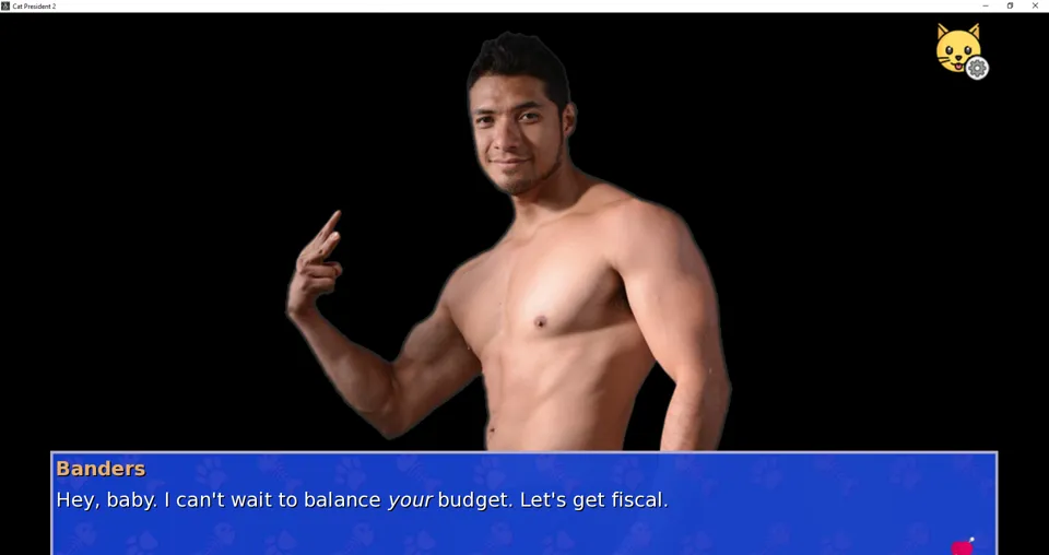 Banders’ storyline presents a deeply cynical view of the American political process, from the very selection of candidates - Banders thinks he was chosen to make more mainstream candidates look better by comparison - to voter engagement to candidates themselves. While the world of Cat President has always been one with a cynical view of the role of the presidency in American politics, that this game sets the romance to the side to focus on Banders’ simultaneous inappropriateness and meteoric rise speaks volumes to how the devs’ beliefs have changed. There is no longer that hopeful optimism that politics will be all right, and that changing the system will somehow make democracy more functional. Banders shows that the process itself is no longer functional, and that there is perhaps no actual way to save it.