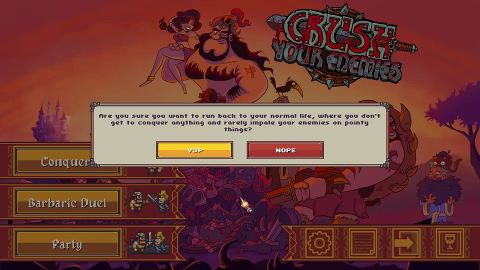 It’s this combination of humour and dynamism that keep me coming back to Crush Your Enemies. While it has a story, that story isn’t the point, neither to me, nor, I suspect, to the barbarians telling that story. Instead, this is a moment game. It recognises its strength lies in the moment-to-moment fun, and just seeks to heighten that fun as much as possible. It succeeds. I play the battles again and again because they are fun, and the jokes that the barbarians tell just leave me smiling as I do it.