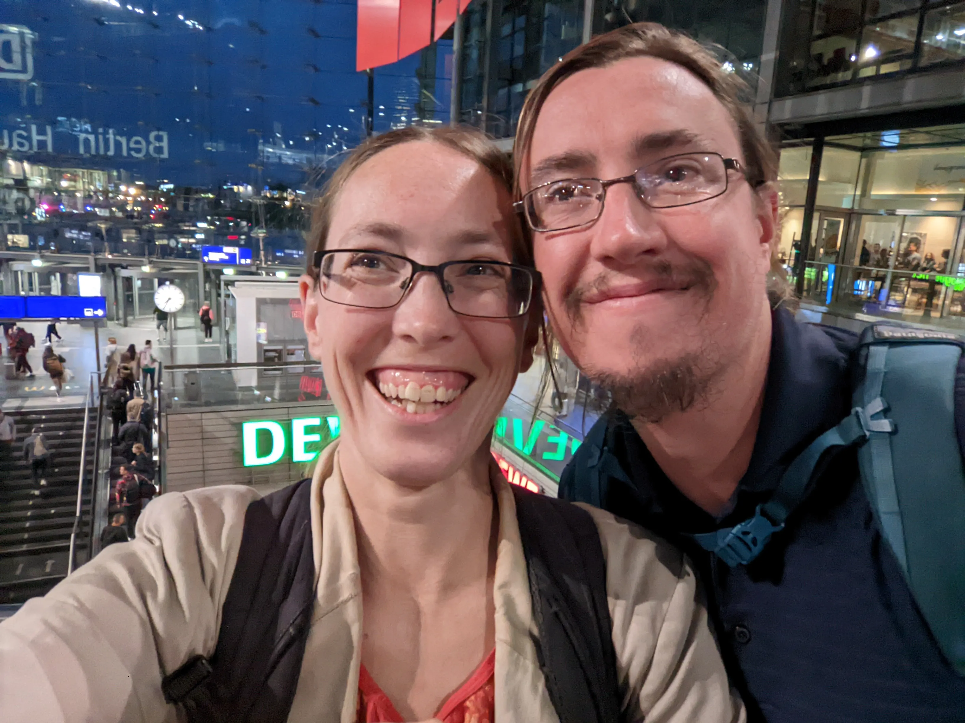 The author in Berlin, shortly before getting some excellent vegan currywurst at the Berlin Hauptbahnhof (Source: Me)