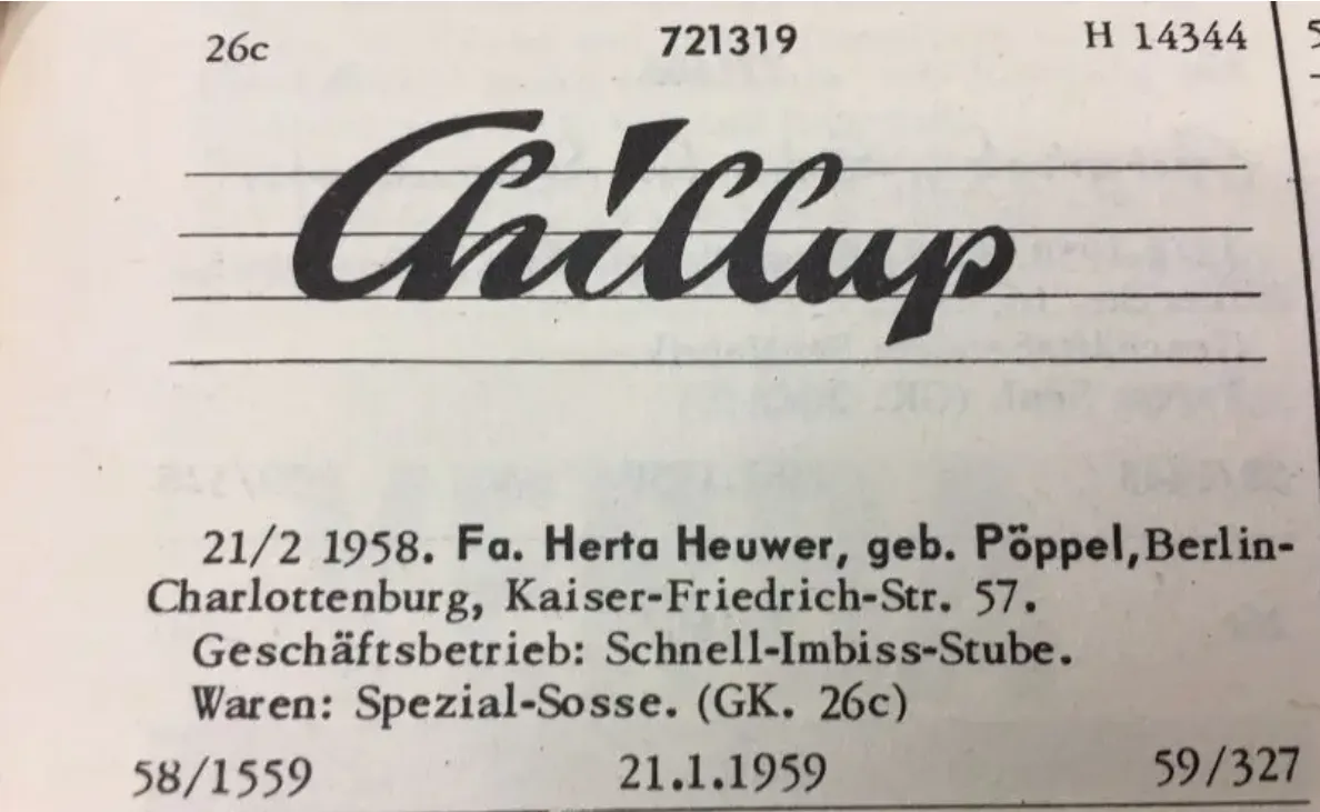 The original 1959 patent for the currywurst using its original name, chillup (Source: Berlinexperiences.com)