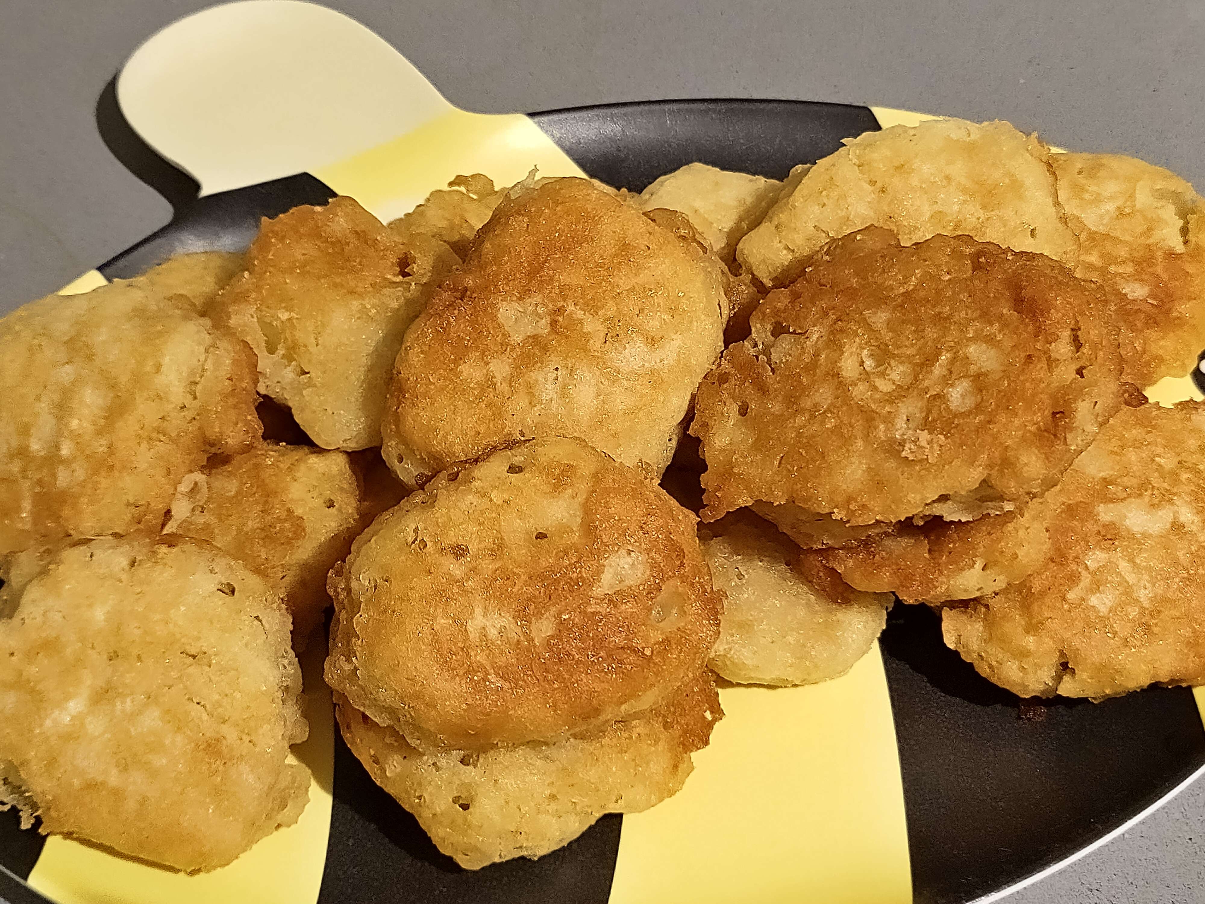 - Heat oil over medium-high heat. When hot enough, add a spoonful of batter at a time to the oil, flattening with either a knife or the back of a spoon.