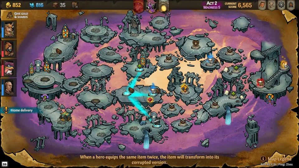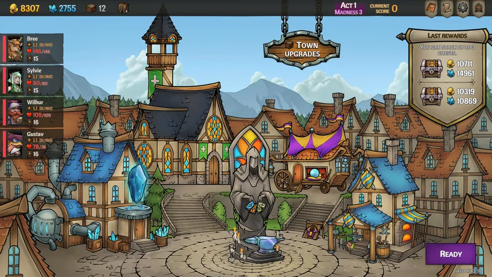 However, it’s in these optimisation mechanics that the flaws of the game also start to appear. For many deck-builders, the replayability of the game centers on its draft mechanics, and the idea that any given run will differ from any other because of a difference in the draft. As an example, at the end of each combat in Across the Obelisk, players receive card rewards. These rewards are random, and so, in theory, the deck the player builds should also be more randomised. Similarly, the equipment the player collects over the course of the game enhances the deck, and is also randomly distributed. This, again, should lead to each run being different, since the raw resources with which a deck is crafted are different. In practice, however, the randomness is disrupted by the rest point between levels - the town.