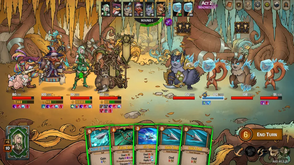 Across the Obelisk isn’t unique in its genre. Deck-builders have their well-established and much-loved niche in the gaming industry, and they come in a broad variety of shapes and sizes. Across the Obelisk’s contribution to the genre is less its card mechanics, but rather, its party mechanics and how those factor into a particular style of play. Across the Obelisk can be played either single player (with one player controlling four characters) or multi-player (with each player controlling one or more characters). In addition to each individual character’s deck needing to be optimised, each character needs to be optimised to fit within the party dynamics. This has the potential to create interesting, highly optimised parties when playing as a single player, or utter madness when playing multi-player.