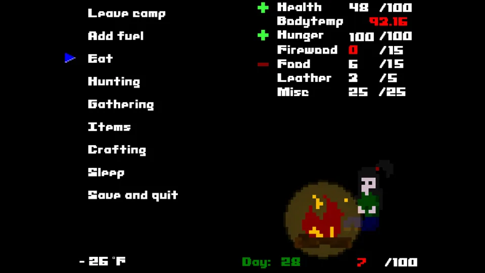 In many ways, Alone is the anti-Ashwalkers. Where Ashwalkers’ resources are plenty, Alone has none. Where Ashwalkers has a giant complex backstory, Alone just has “you crashed, good luck.” Where Ashwalkers has beautiful graphics, Alone has pixel snowstorms. Above all, though, Alone has a compelling narrative of survival in a frozen hellscape and a sense that one wrong move sends it all crashing down. I found myself carefully thinking through every move, trying to figure out what to prioritise and what risks I could take.
