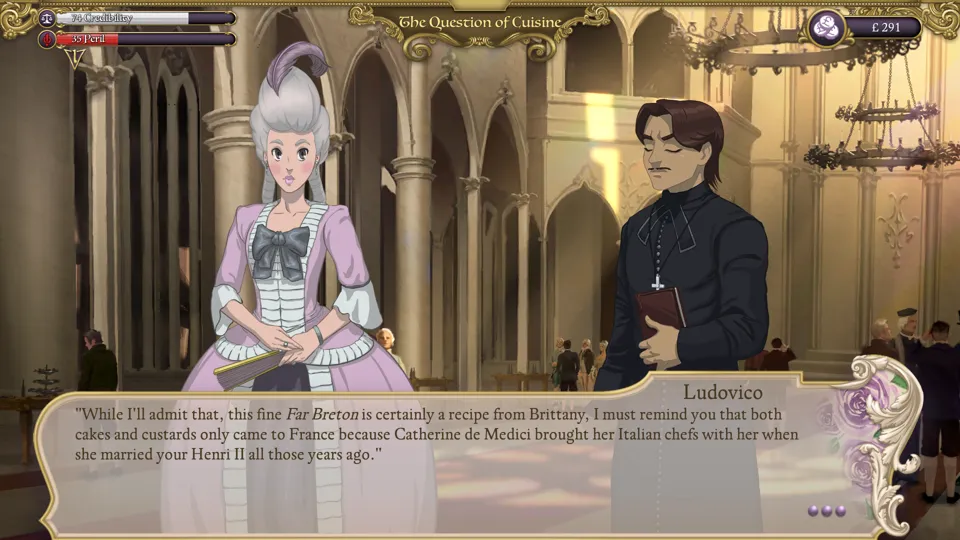Though the various romances are fun, it was the story as a whole that kept me hooked. I was invested in who Yvette ended up with, but found myself setting aside the dating elements to instead try to manipulate the fate of France. I picked out the dresses that would give me the most influence at the parties that mattered, then curried what I learned to diminish the power of as many of my enemies as I could. The various strands of story and hidden ways to bring my own machinations to fruition were delightful, and I didn’t want to stop.