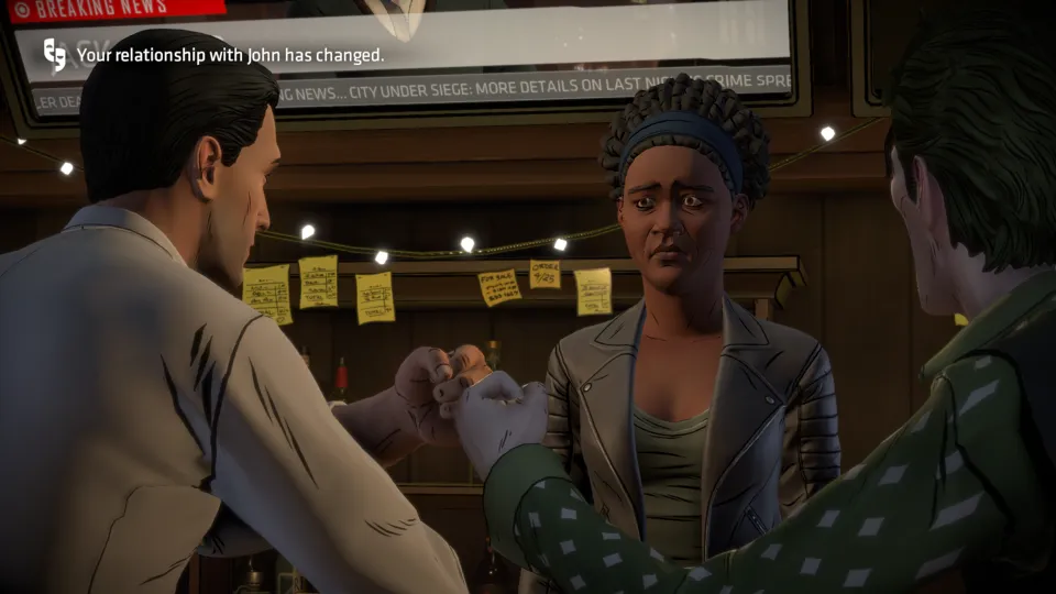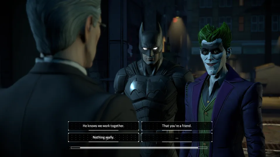 This immersion into escapism fails, though, when the character I’m directing and I fundamentally disagree, and the game provides no avenue to explore that. This is always the risk with interactive novels. Unlike a game where the main character is a completely blank slate, Bruce Wayne is an established character. He has a backstory, his own motivations, and an expectation of what he’ll do. The plot of this game also has its expectations, and much as discussed in the previous review of this series, there are beats it will always hit and fences around our playground of choice. I have no objection to the fences. It’s not possible for a game with a structured plot to leave room for all of the multitudes of choices I could make, and even within this space, Telltale does a fantastic job accommodating a vast range of possibility.