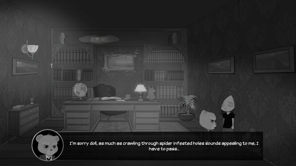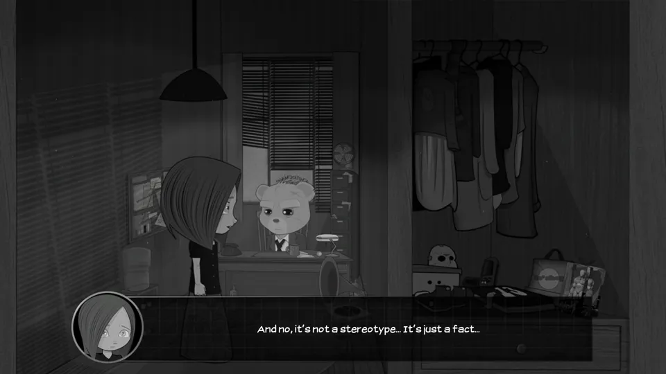 There isn’t any one thing wrong with Bear With Me. It isn’t mechanically broken to the point of unplayability, nor is it particularly immediately awful. Instead, it’s the amalgamation of its misunderstandings of every genre it belongs to that utterly and completely destroy it. It does not understand how to use the mechanics of a point and click in a mystery game, or indeed, how to make a point and click flow at all. It does not understand the importance of compelling writing in a mystery, let alone a noir mystery. It does not understand what makes a good voice acting performance. It does not understand how important each of these elements is, and how combining a sub-par version of each of them creates a sum that is so, so much worse than any of its parts.