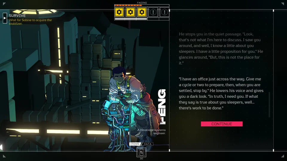 Citizen Sleeper understands this truth, and acknowledges it while trying to offer some comfort. The Sleeper understands they’re worthless, but finds worth in their interactions with people and the world around them. They defy the mantra their corporate owners have ascribed to them through surviving and persisting, even when they have ceased to have value. Still, when their persistence is embodied in work and effort, it still raises the question of whether they’ve truly escaped, or if that need to be productive is so imprinted on their brain that they can only be that cog.
