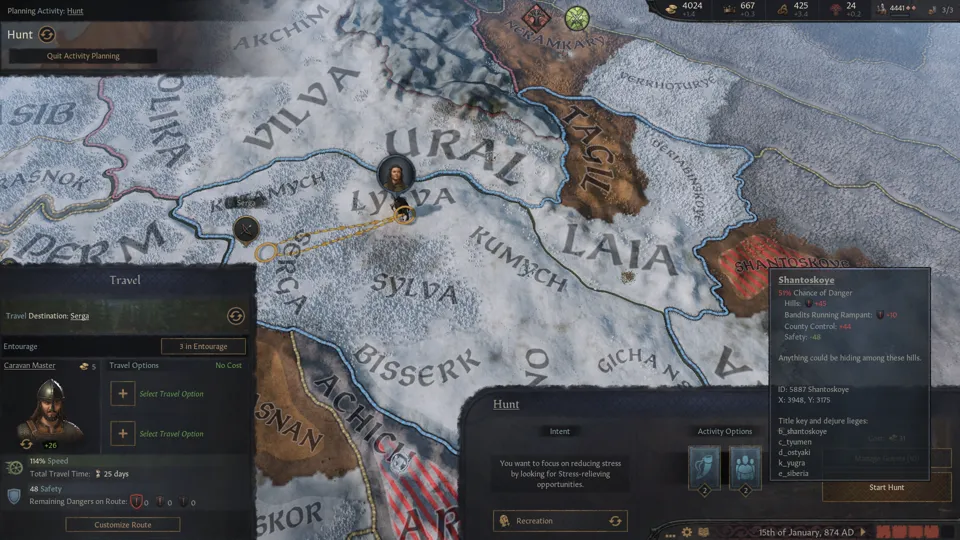 As a grand strategy game, Crusader Kings III feels a bit shallow. Its battle mechanics are simple, and the movements of armies are in many ways just watching the large number devour the smaller numbers. While the game does add terrain as a fairly effective modifier on combat, the actual act of marching into battle is fairly shallow.