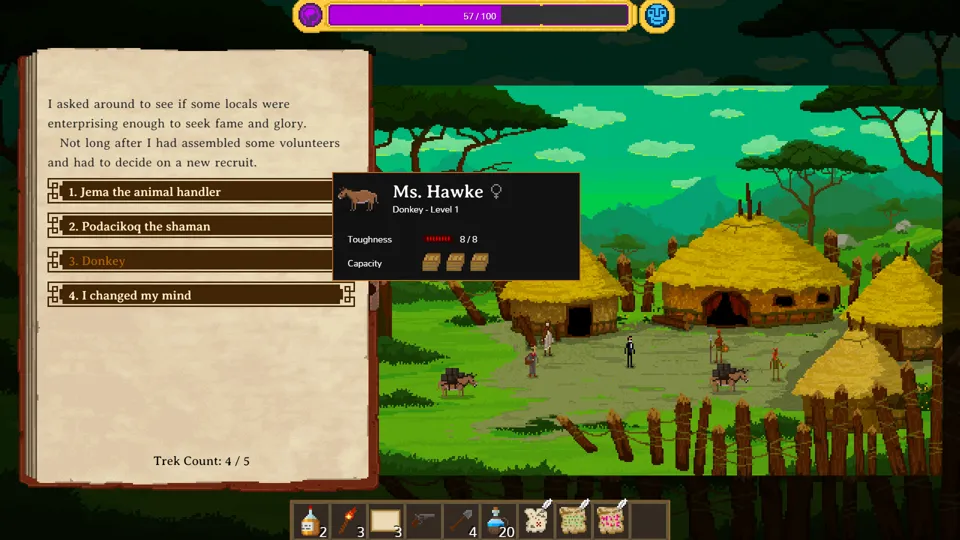 None of this is what Curious Expedition chooses to do. From the outset, it tells the player to have a fun adventure, and sends them out with every expectation that that is what they will do. It acts with the clarity of conscience of a Belgian king assessing the profitability of his rubber plantations. It presents the exploitation of indigenous peoples as a decision with minimal consequences, and even those consequences can be easily avoided or killed.
